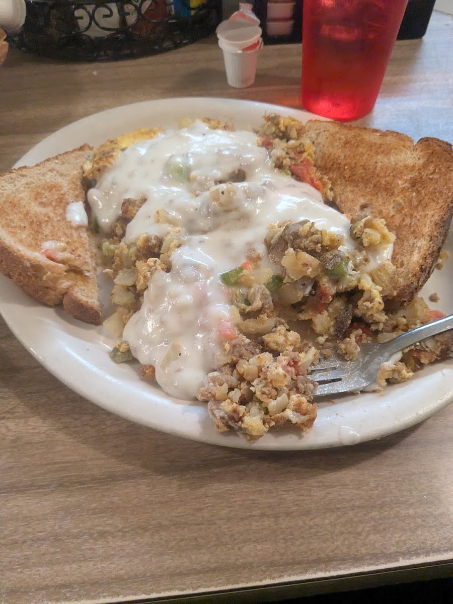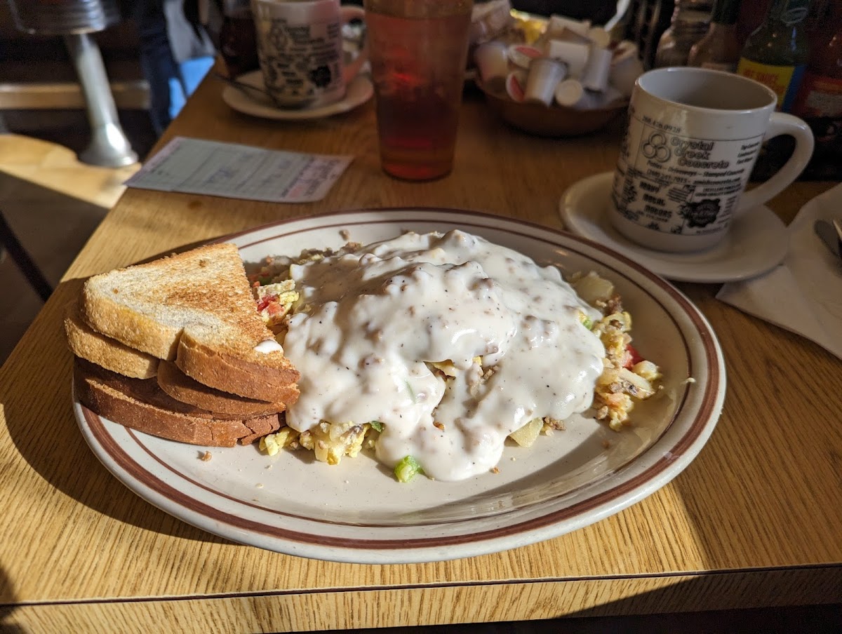 For those who love a hearty and filling breakfast, the Half Biscuit and Gravy is the perfect choice. Rich, creamy gravy generously poured over a warm, flaky biscuit makes for a comfort food experience like no other. This dish embodies everything that is wonderful about traditional home cooking.